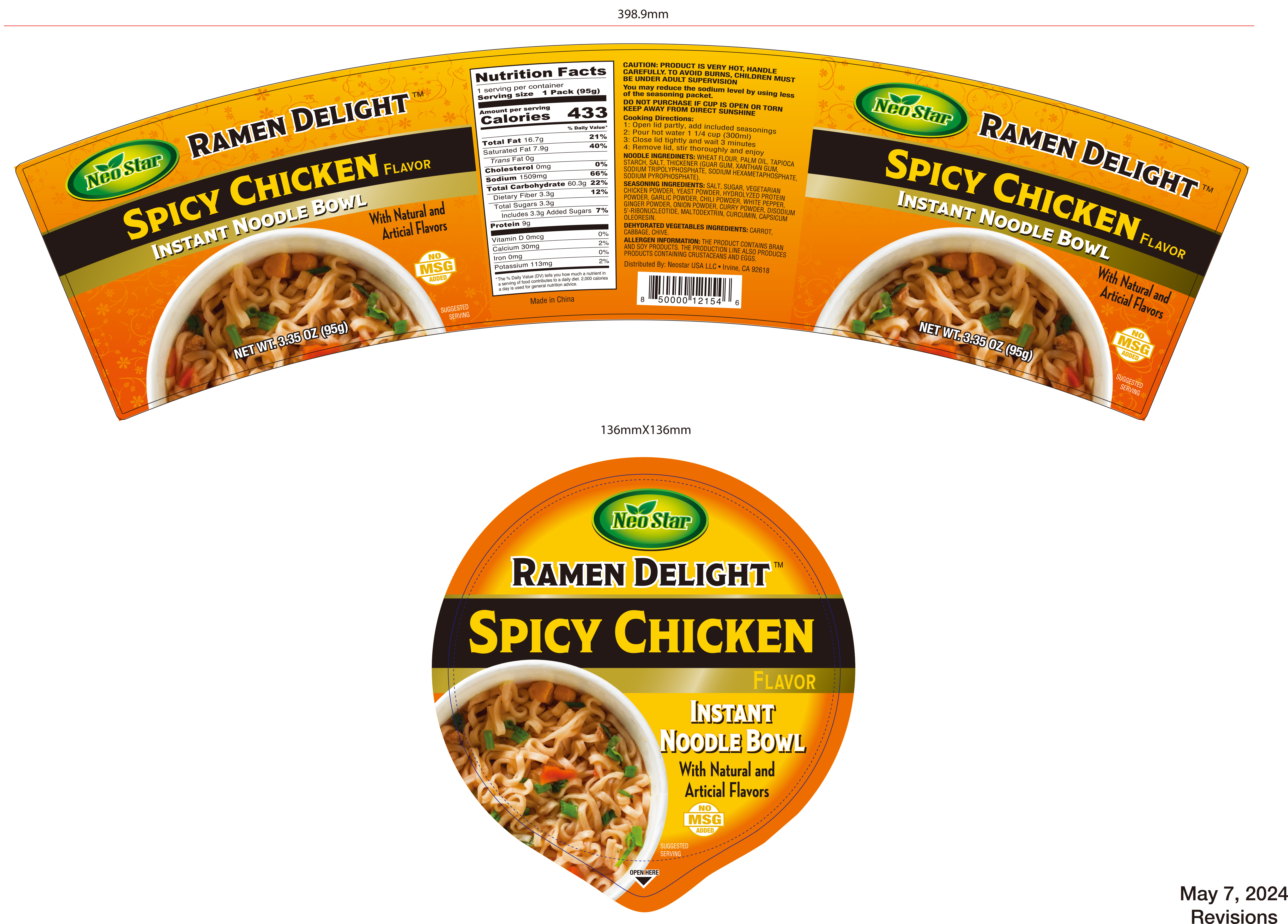 - Ingredients: NOODLE INGREDINETS: WHEAT FLOUR, PALM OIL, TAPIOCA STARCH,SALT, THICKENER(GUAR GUM, XANTHAN GUM, SODIUM TRIPOLYPHOSPHATE, SODIUM HEXAMETAPHOSPHATE,SODIUM PYROPHOSPHATE.) SEASONING INGREDIENTS: SALT,SUGAR, VEGETARIAN CHICKEN POWDER, YEAST POWDER, HYDROLYZED PROTEIN POWDER, GARLIC POWDER, CHILI POWDER, WHITE PEPPER, GINGER POWDER, ONION POWDER, CURRY POWDER, DISODIUM 5’-RIBONUCLEOTIDE, MALTODEXTRIN, CURCUMIN, CAPSICUM OLEORESIN. DEHYDRATED VEGETABLES INGREDIENTS: CARROT, CABBAGE, CHIVE.
