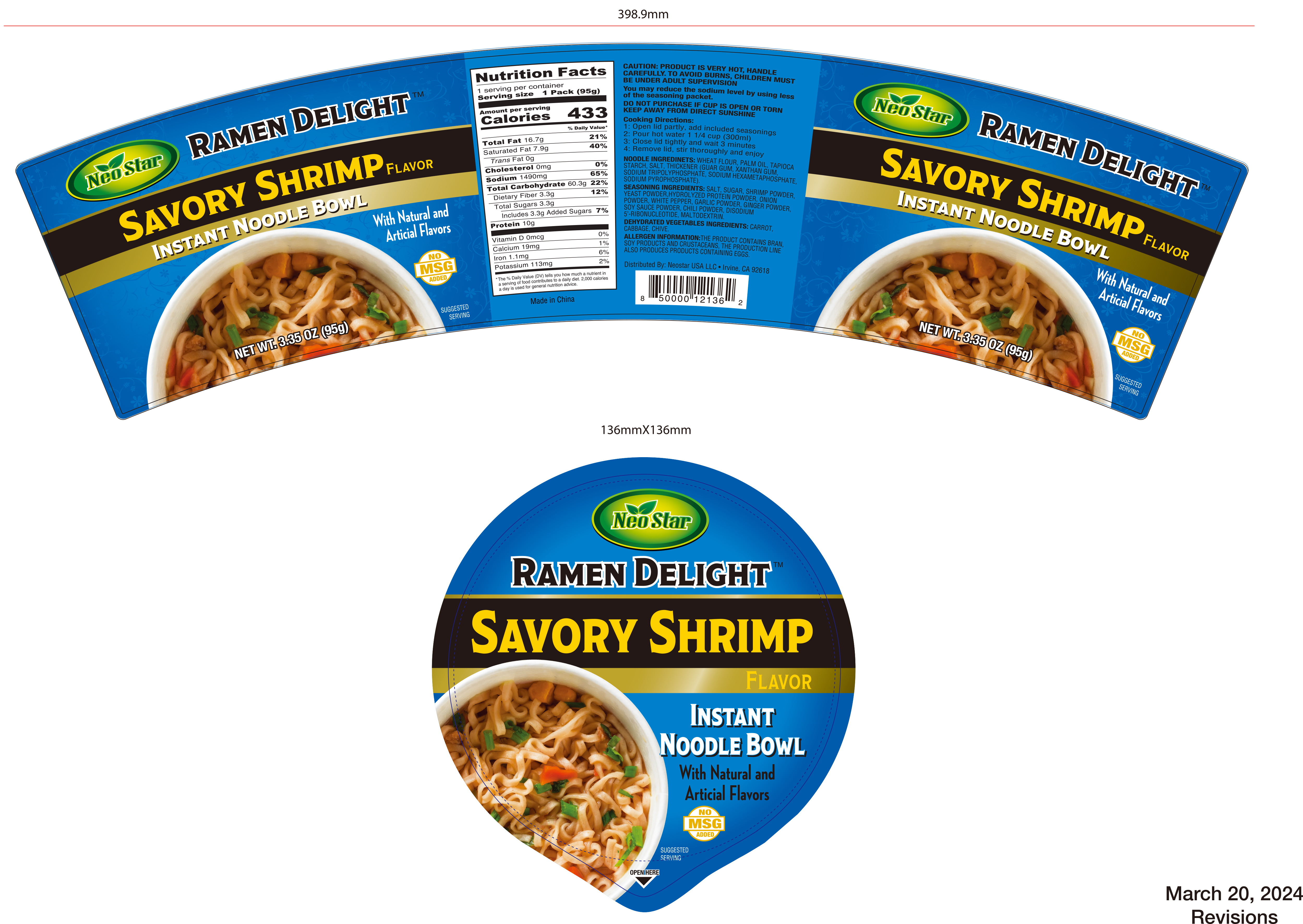 - Ingredients: NOODLE INGREDINETS: WHEAT FLOUR,PALM OIL,TAPIOCA STARCH,SALT,THICKENER(GUAR GUM,XANTHAN GUM,SODIUM TRIPOLYPHOSPHATE,SODIUM HEXAMETAPHOSPHATE,SODIUM PYROPHOSPHATE.) SEASONING INGREDIENTS: SALT,SUGAR,SHRIMP POWDER,YEAST POWDER,HYDROLYZED PROTEIN POWDER,ONION POWDER,WHITE PEPPER,GARLIC POWDER,GINGER POWDER,SOY SAUCE POWDER,CHILI POWDER, DISODIUM 5’-RIBONUCLEOTIDE,MALTODEXTRIN. DEHYDRATED VEGETABLES INGREDIENTS: CARROT,CABBAGE,CHIVE.