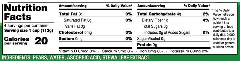 - Ingredients: PEAR, WATER, NATURAL JUICE FROM CONCENTRATE.