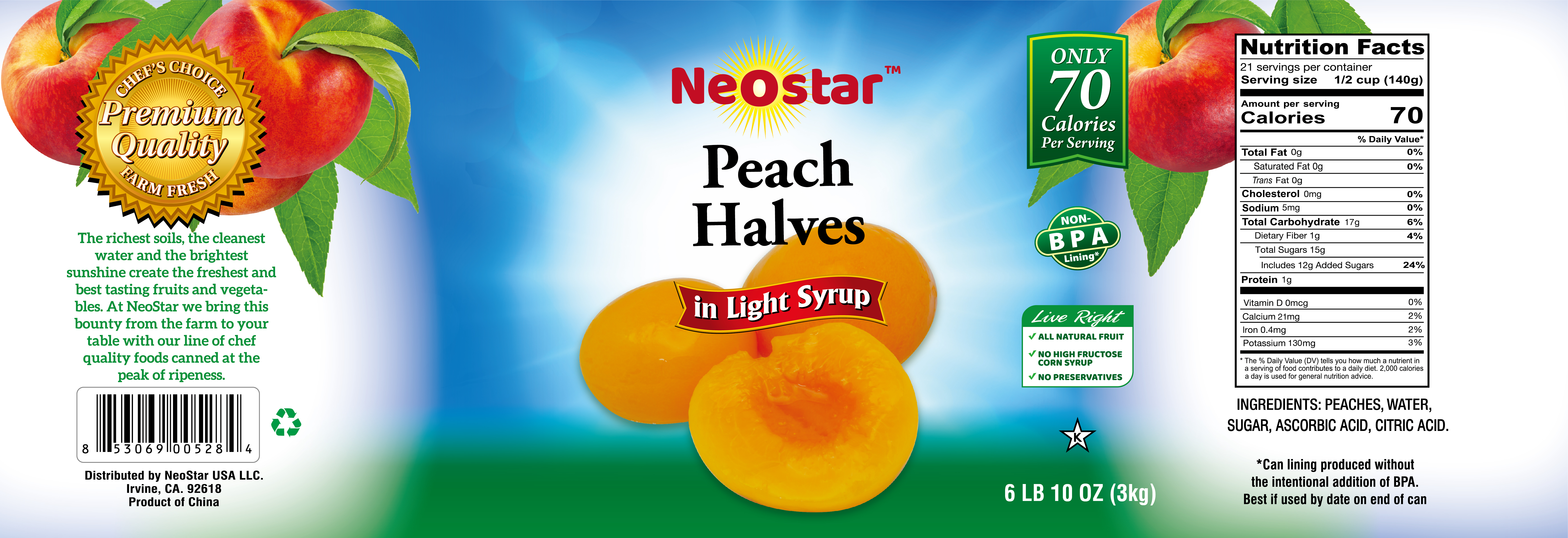 #10 (106oz) Peach Halves, Light Syrup
