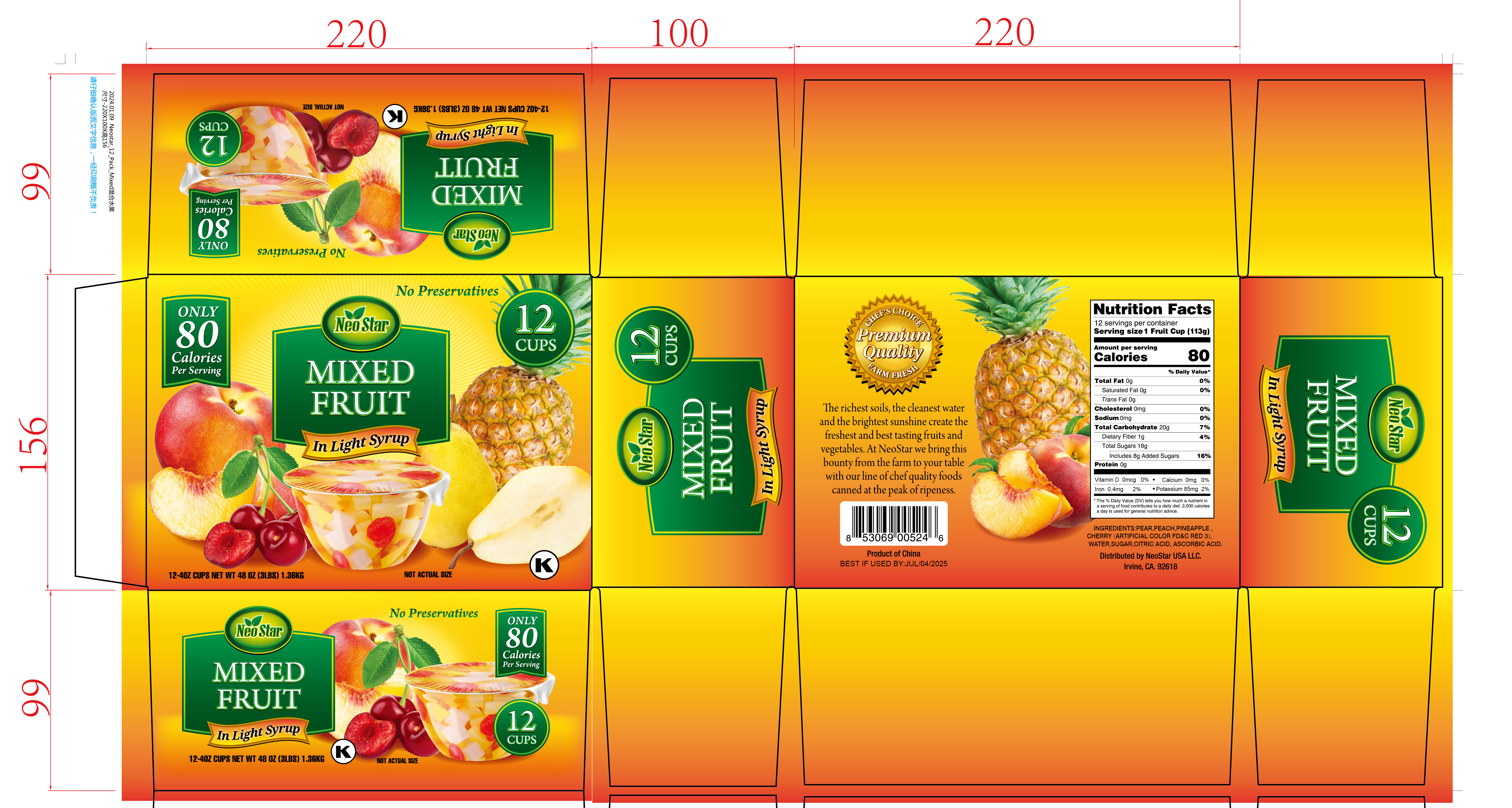 12/4oz Mixed Fruit Cups, Light Syrup