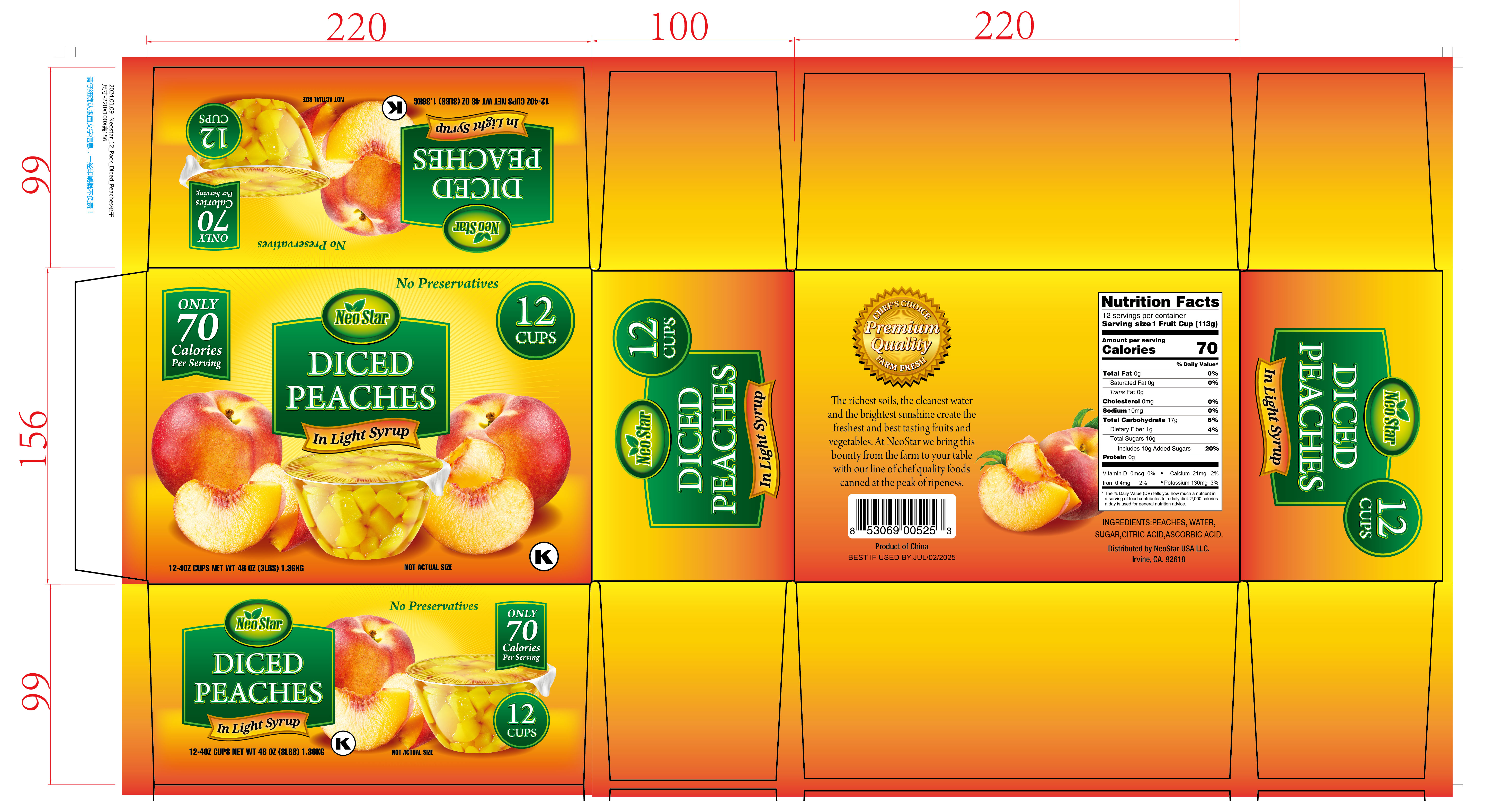 12/4oz Peach Cups, Light Syrup