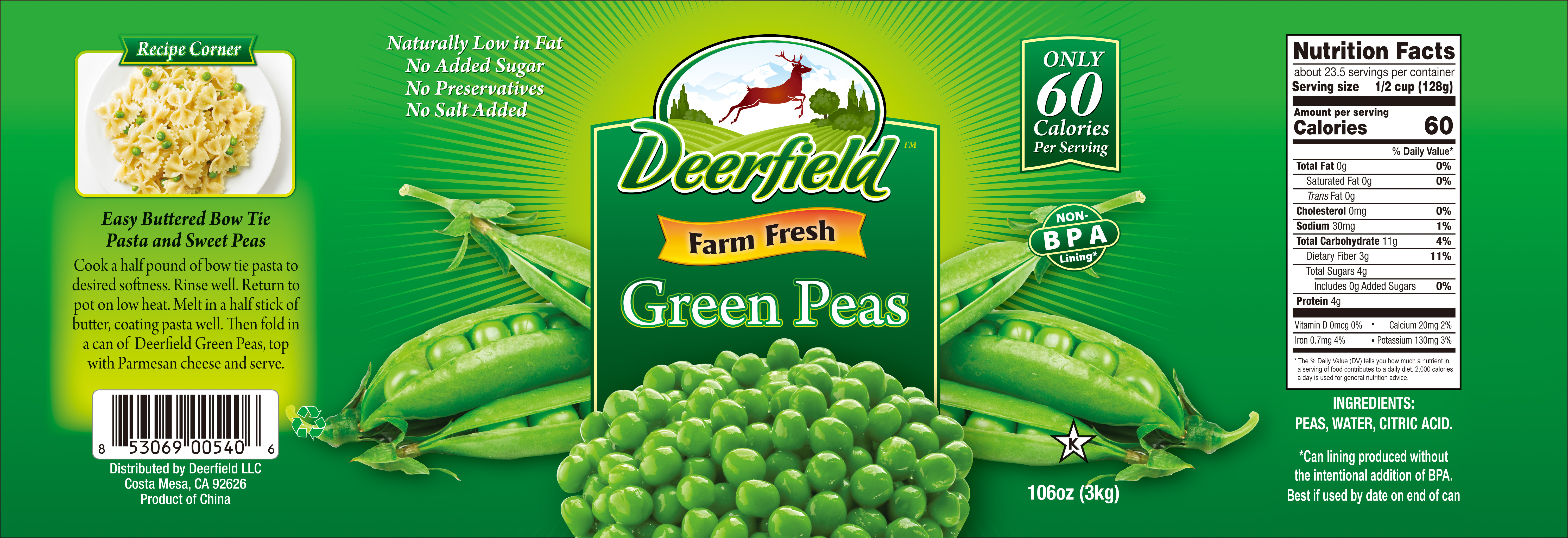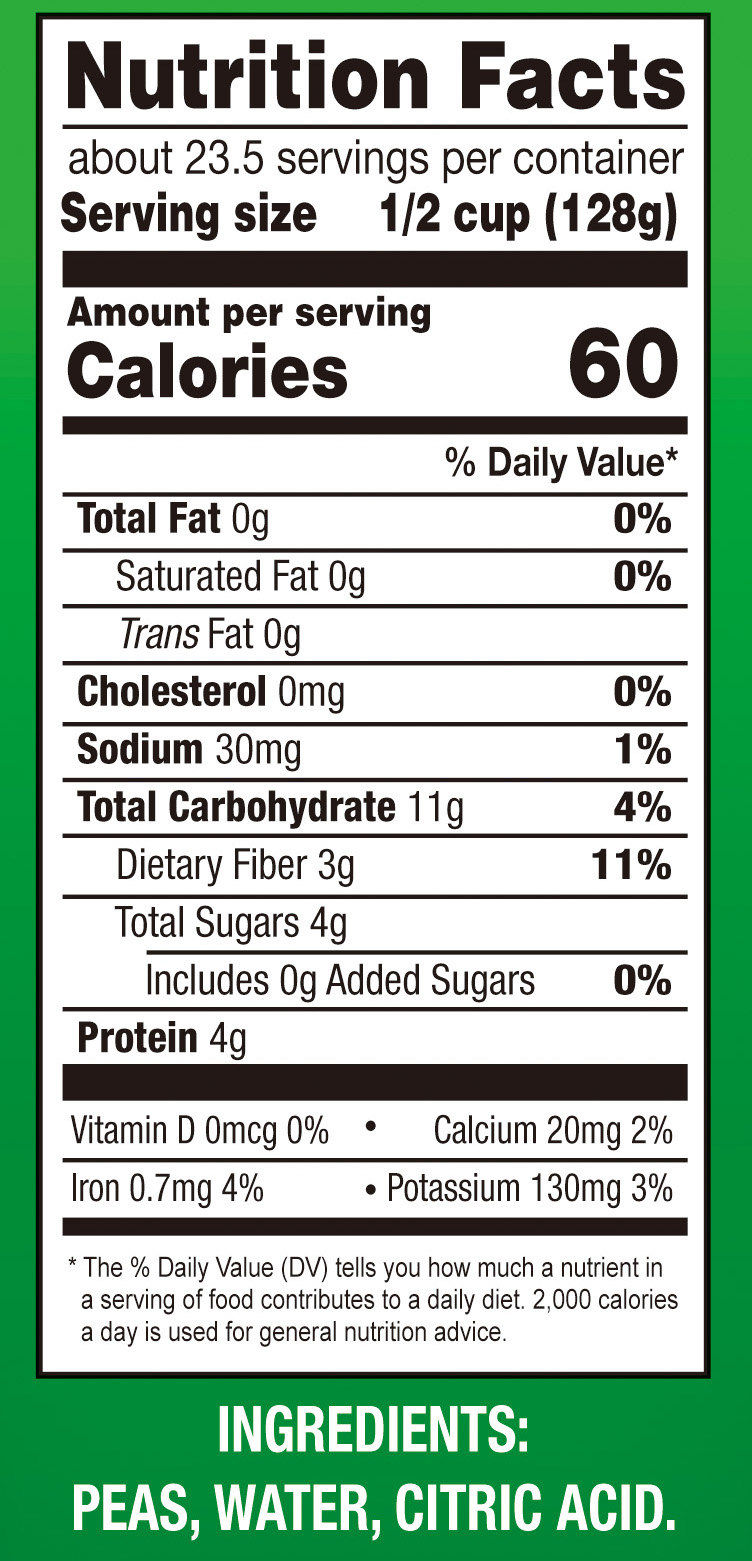 - Ingredients: PEAS, WATER, CITRIC ACID.