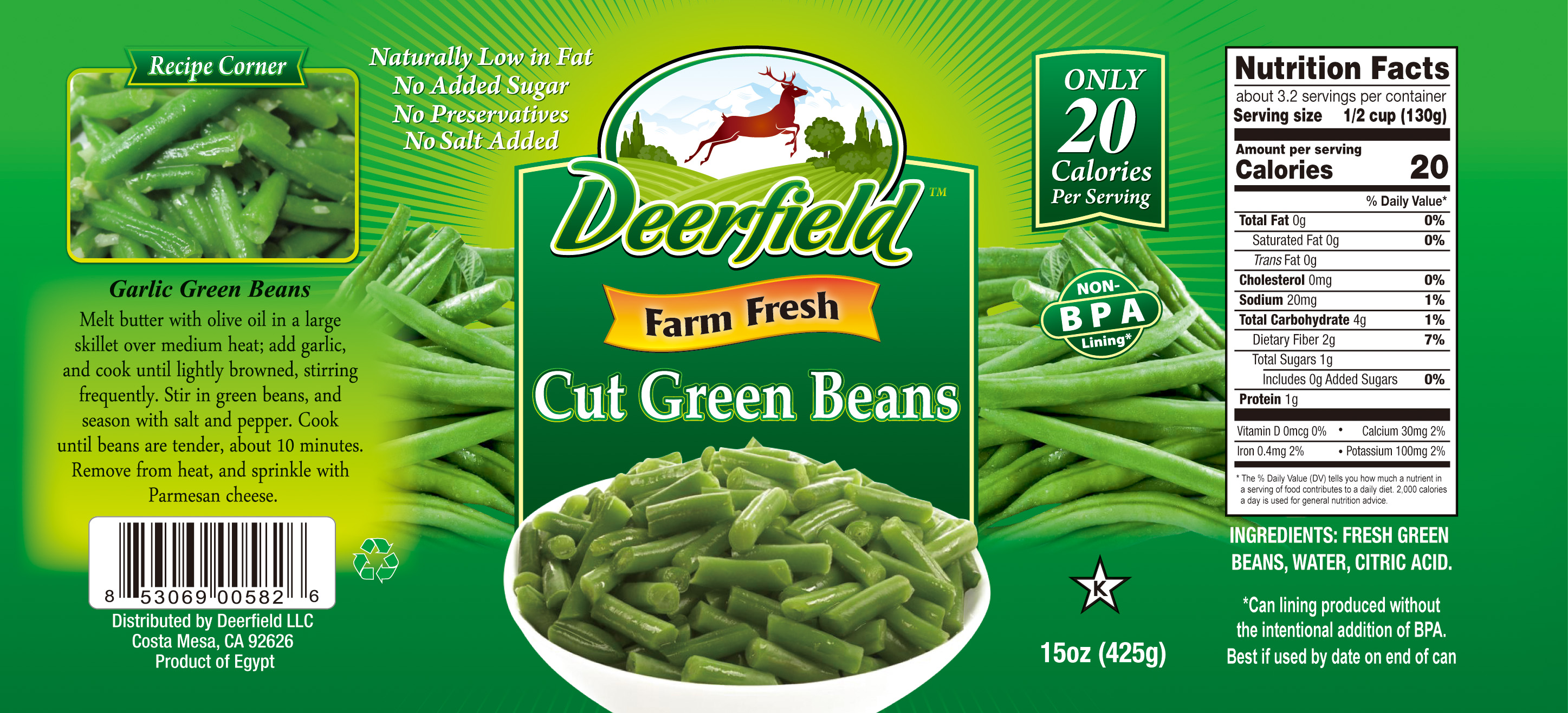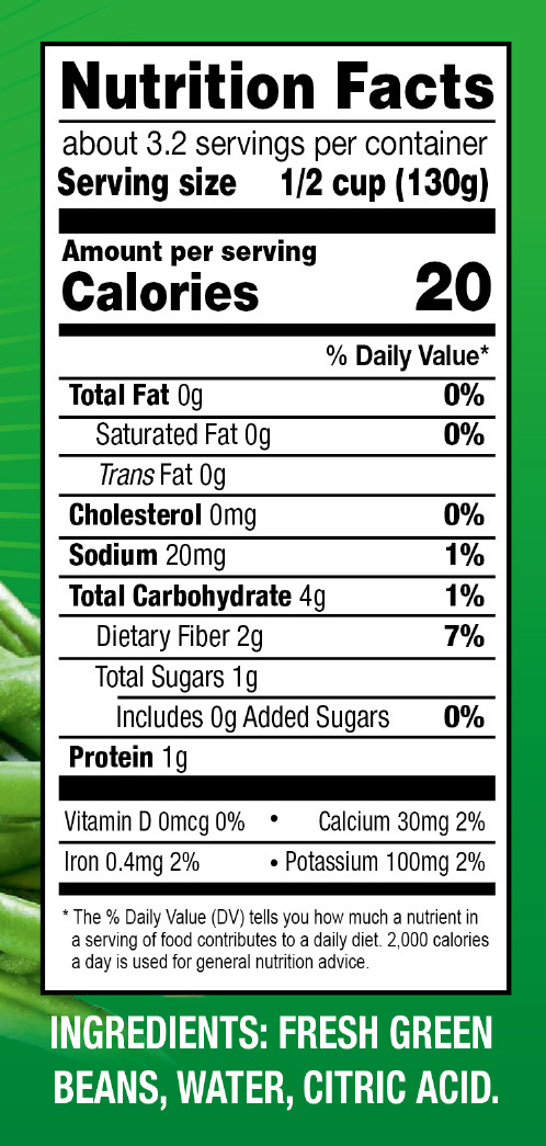 - Ingredients: FRESH GREEN BEANS, WATER, CITRIC ACID.