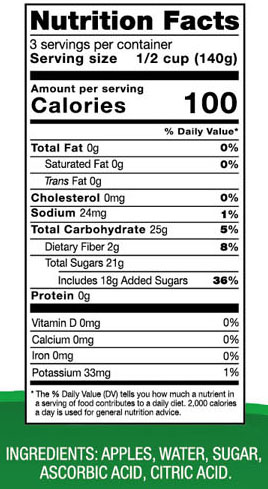 - Ingredients: APPLE, WATER, SUGAR, ASCORBIC ACID.