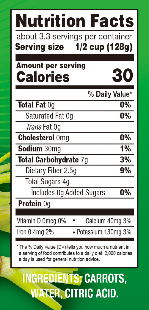 - Ingredients: CARROTS, WATER, CITRIC ACID