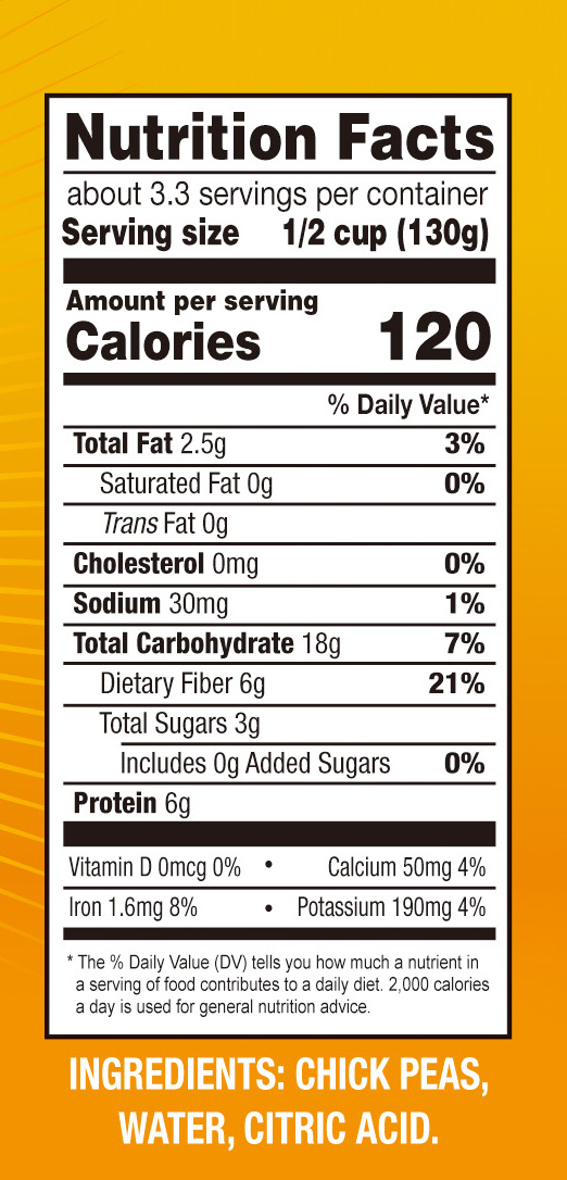 - Ingredients: CHICK PEAS, WATER, CITRIC ACID
